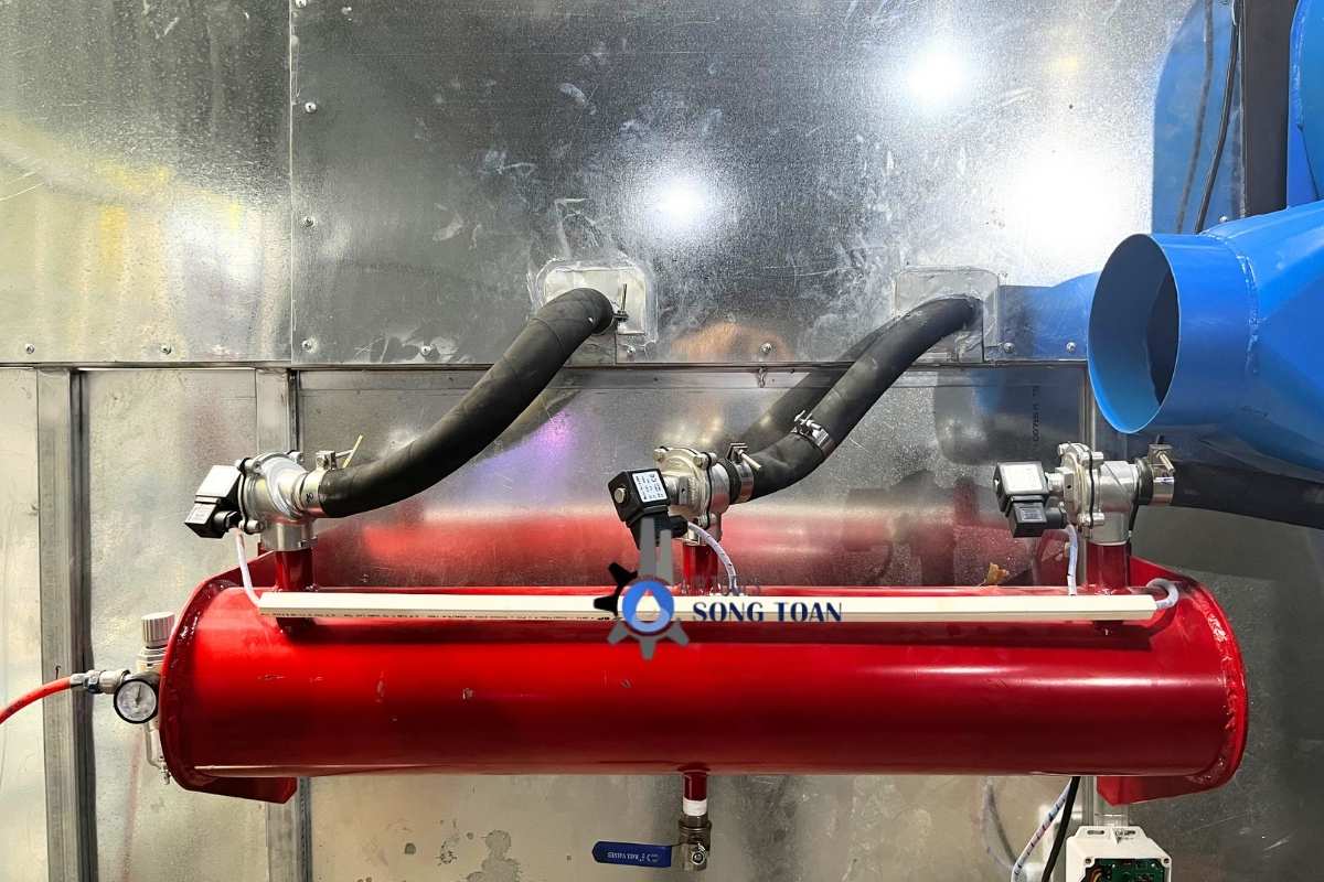 Bình tích khí và van xả trong bộ thu hồi bột sơn bằng filter