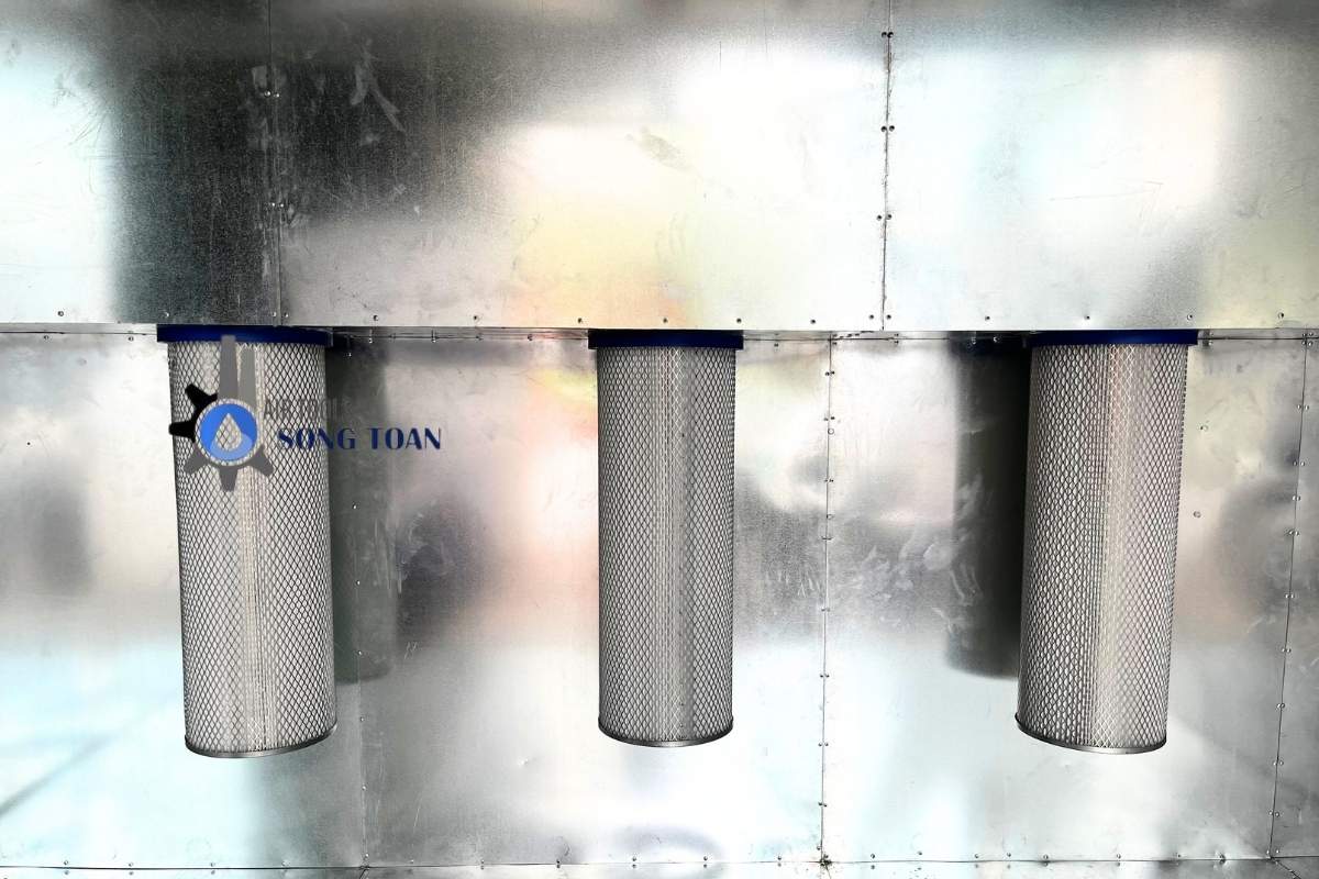 Buồng phun đôi, lò sấy tuần hoàn 35–40m, tủ điện trung tâm, filter cartridge |